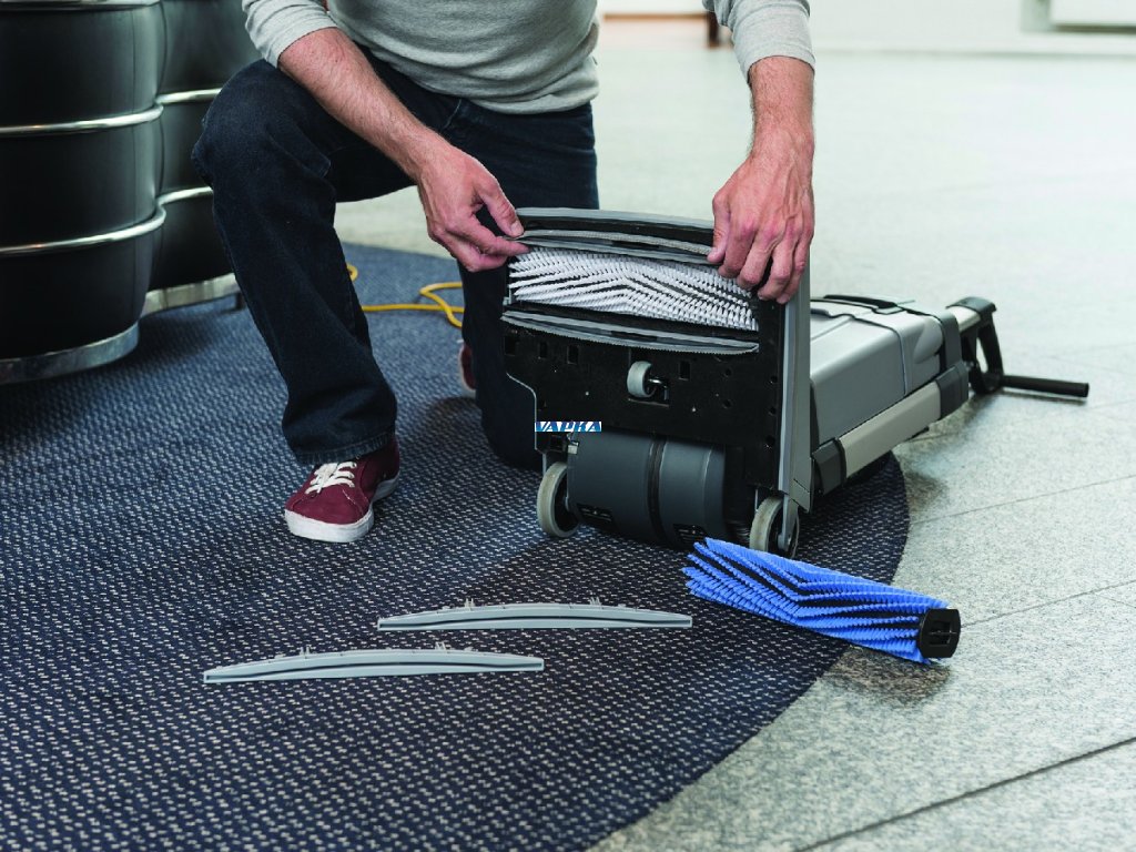 • Ploché provedení sběrné nádrže a snadný přístup umožňují rychlé a snadné čištění sběrné nádrže od nečistot. • Umí, co ostatní nesvedou: nízký profil mycí hlavy a její přesah na pravé straně, umožňují čištění těžko dostupných míst. • Snadná a rychlá údržba pomáhá udržovat stroj vždy čistý a funkční.