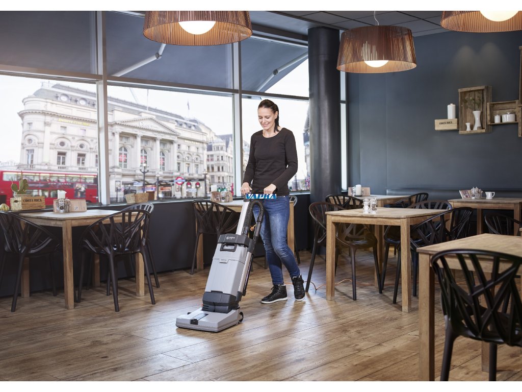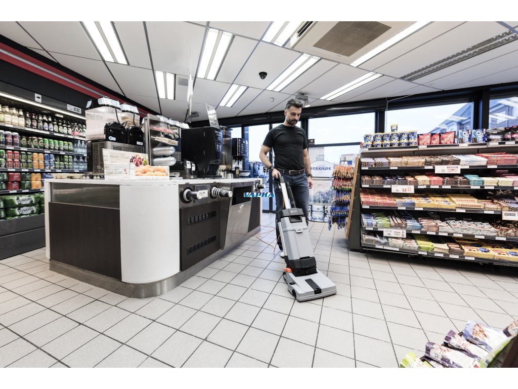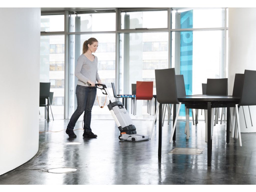 NILFISK SC100 je malý podlahový mycí stroj pro důkladný úklid úzkých ploch. V porovnání s ručním úklidem (mop a kbelík) tento kompaktní vertikální mycí stroj uklidí mnohem rychleji a s vyšší kvalitou.
